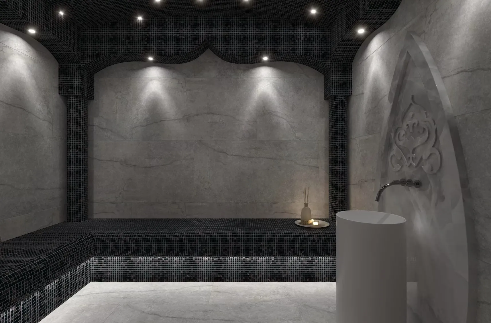 Le hammam à carreler sur mesure permet une personnalisation totale : la forme, les dimensions, le plafond et les matériaux (faïence, tadelakt, béton ciré, etc.). Il s’intègre parfaitement à votre intérieur pour un résultat unique.