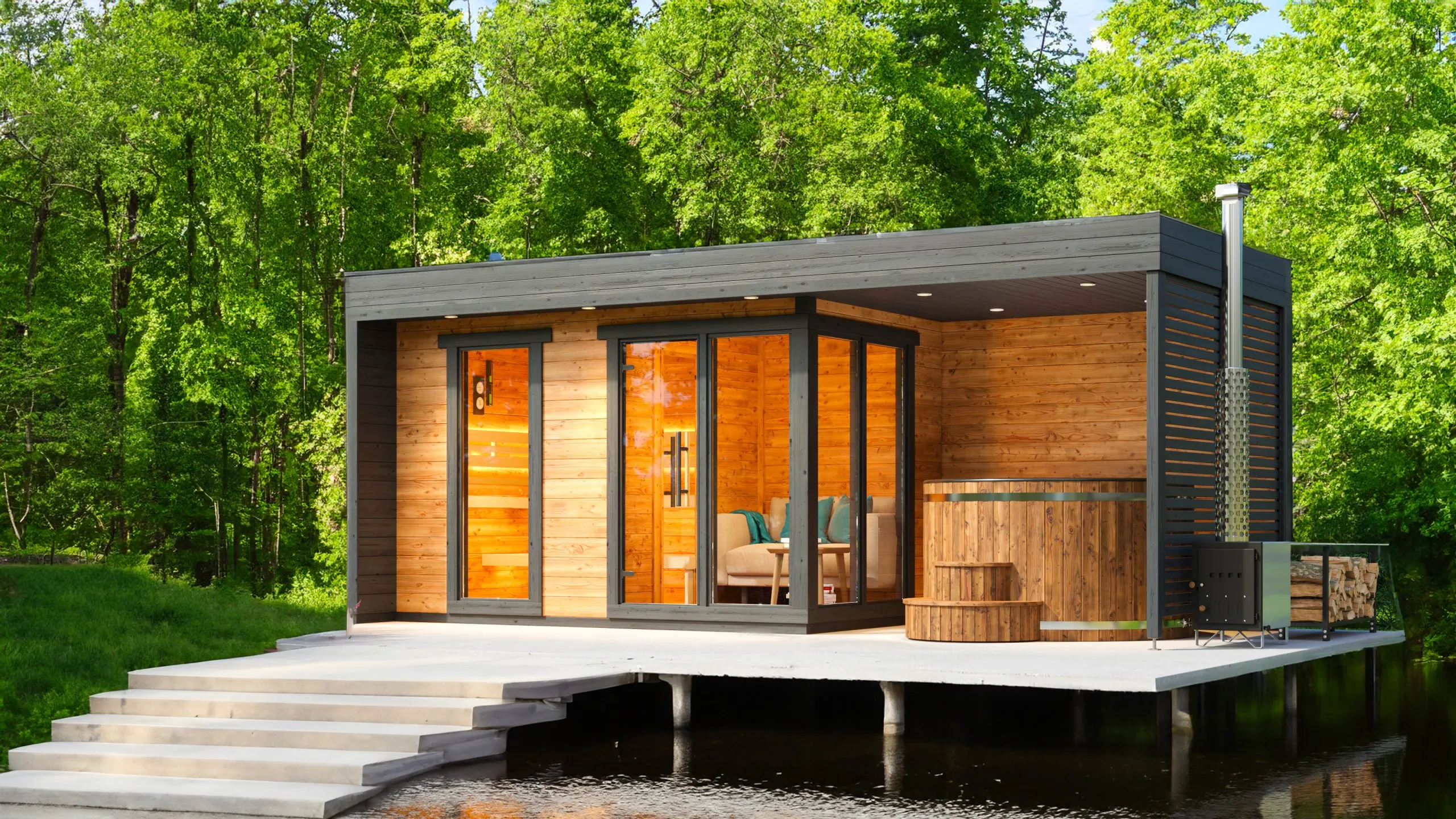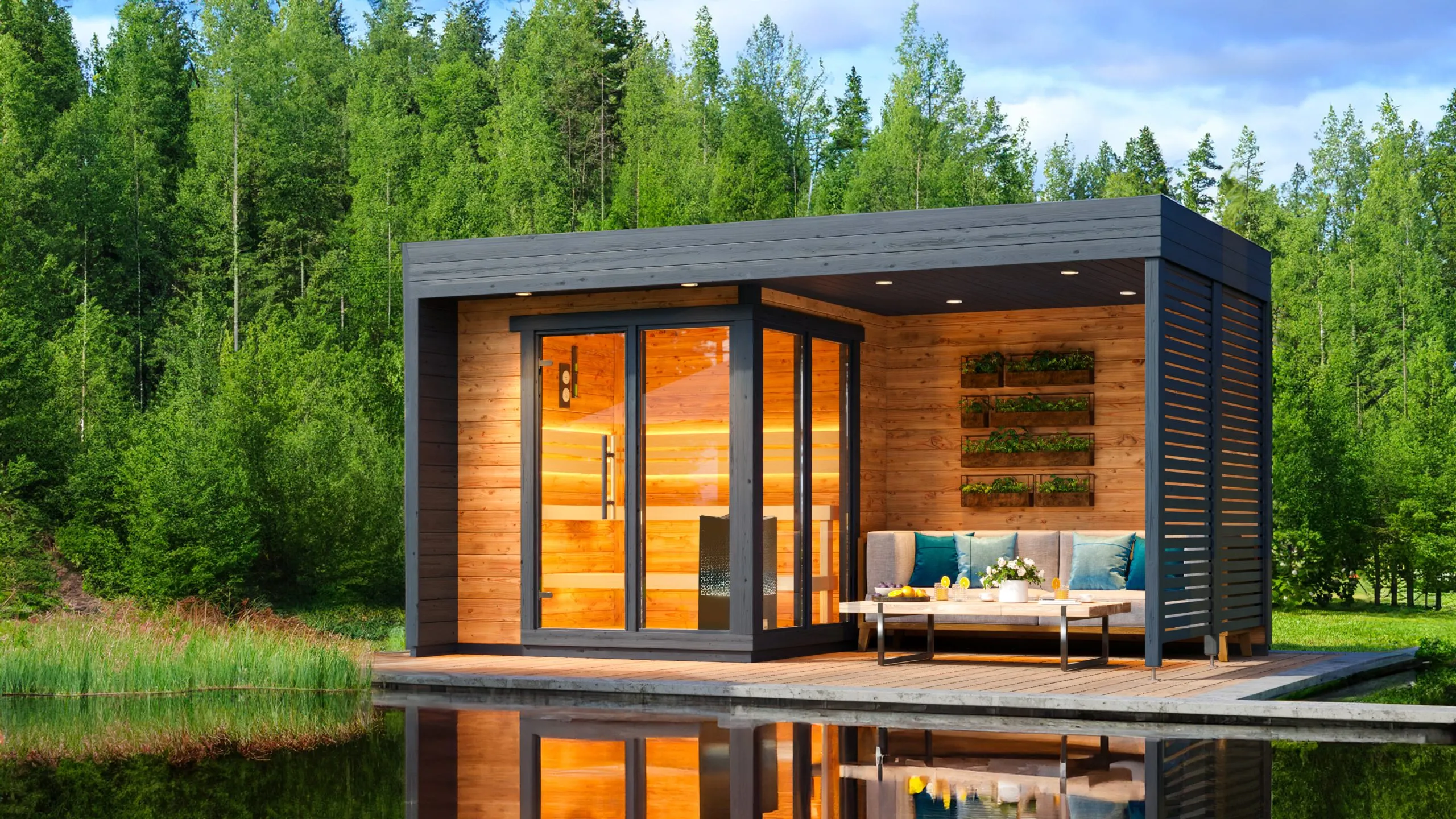 Le sauna d’extérieur Gotland S Plus accueille confortablement jusqu’à 4 personnes