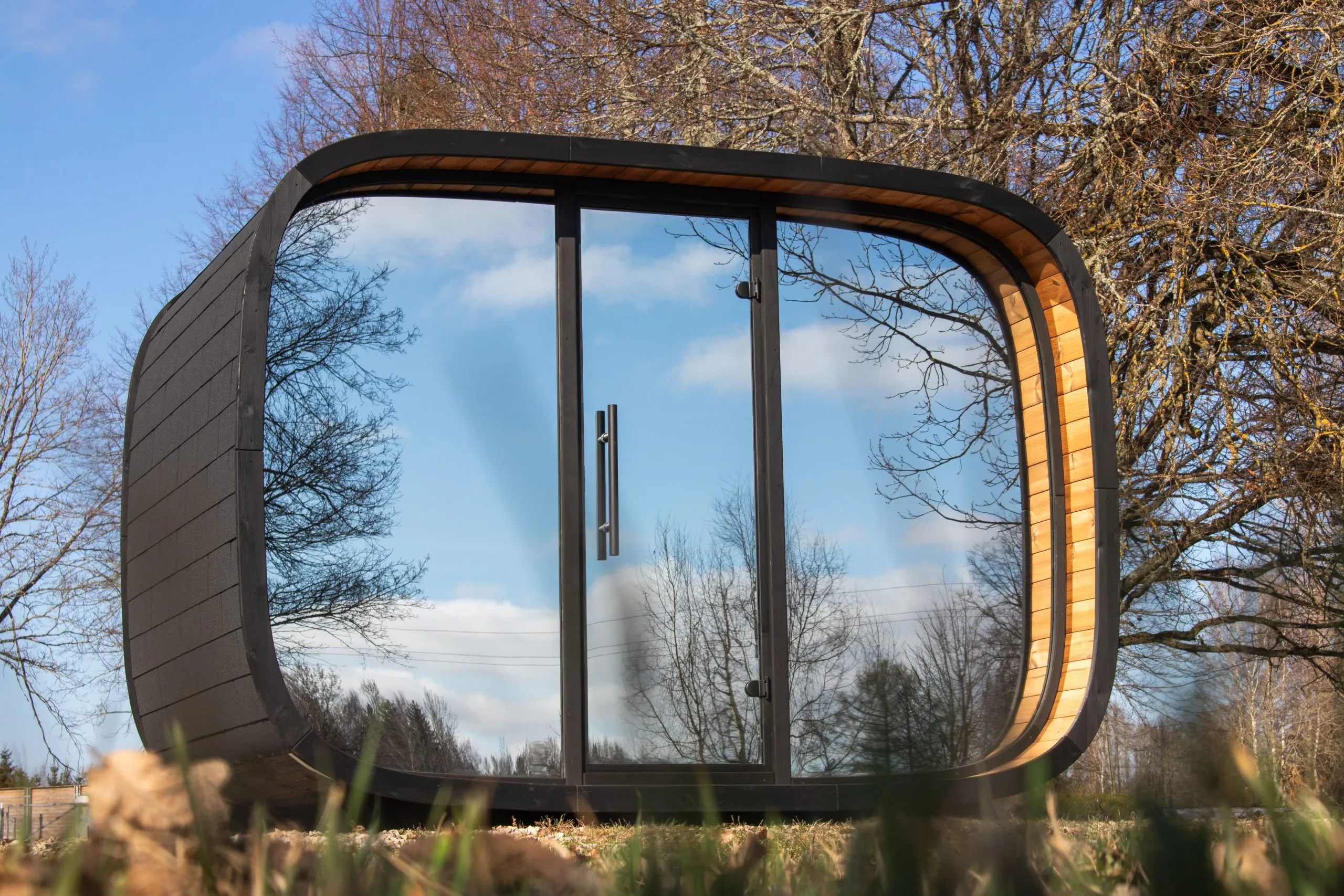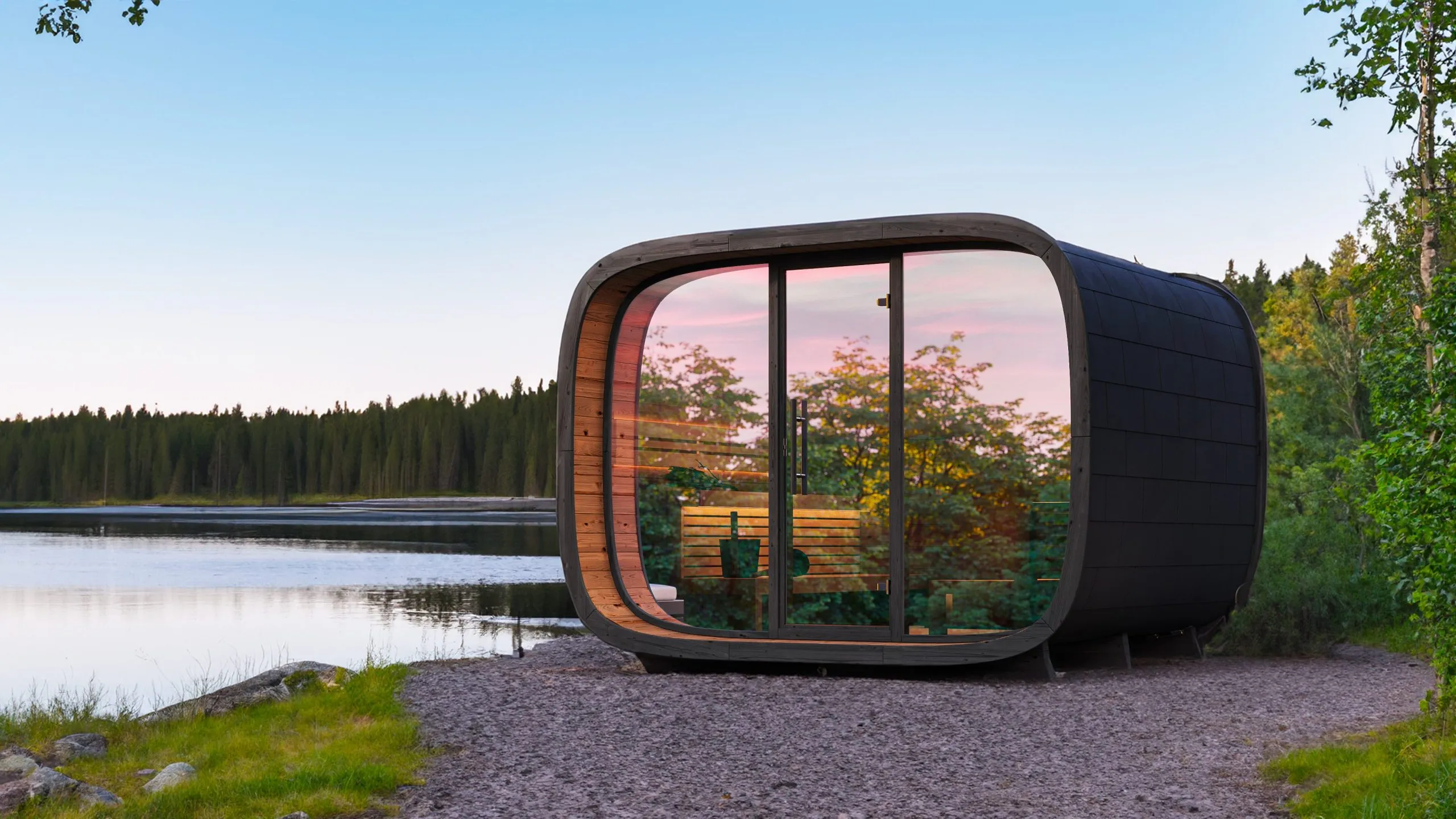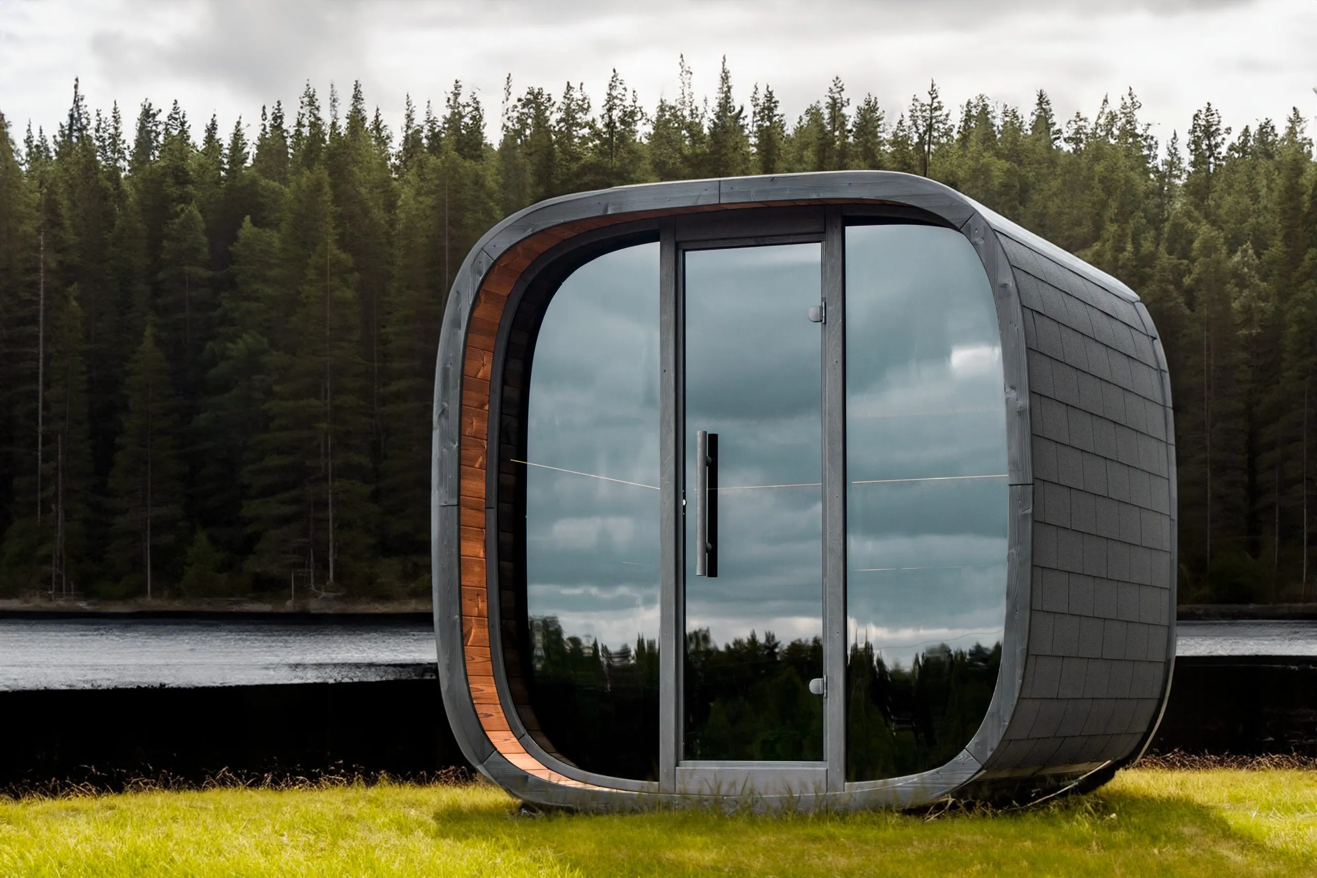 Le sauna d’extérieur Round Cube Mini accueille confortablement jusqu’à 4 personnes